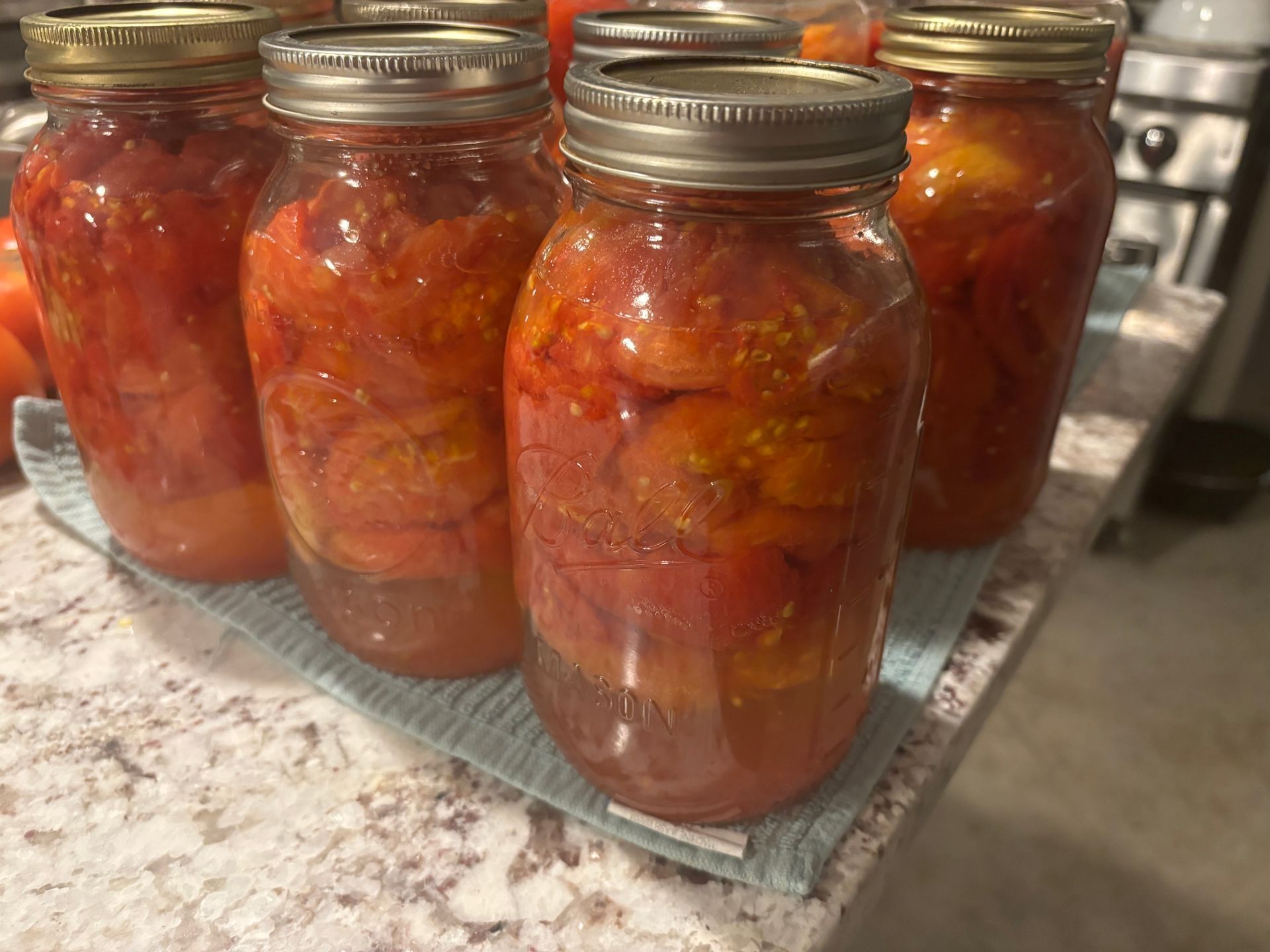 We plant a large garden, and enjoy canning. Tomatoes, applesauce, and green beans in abundance!