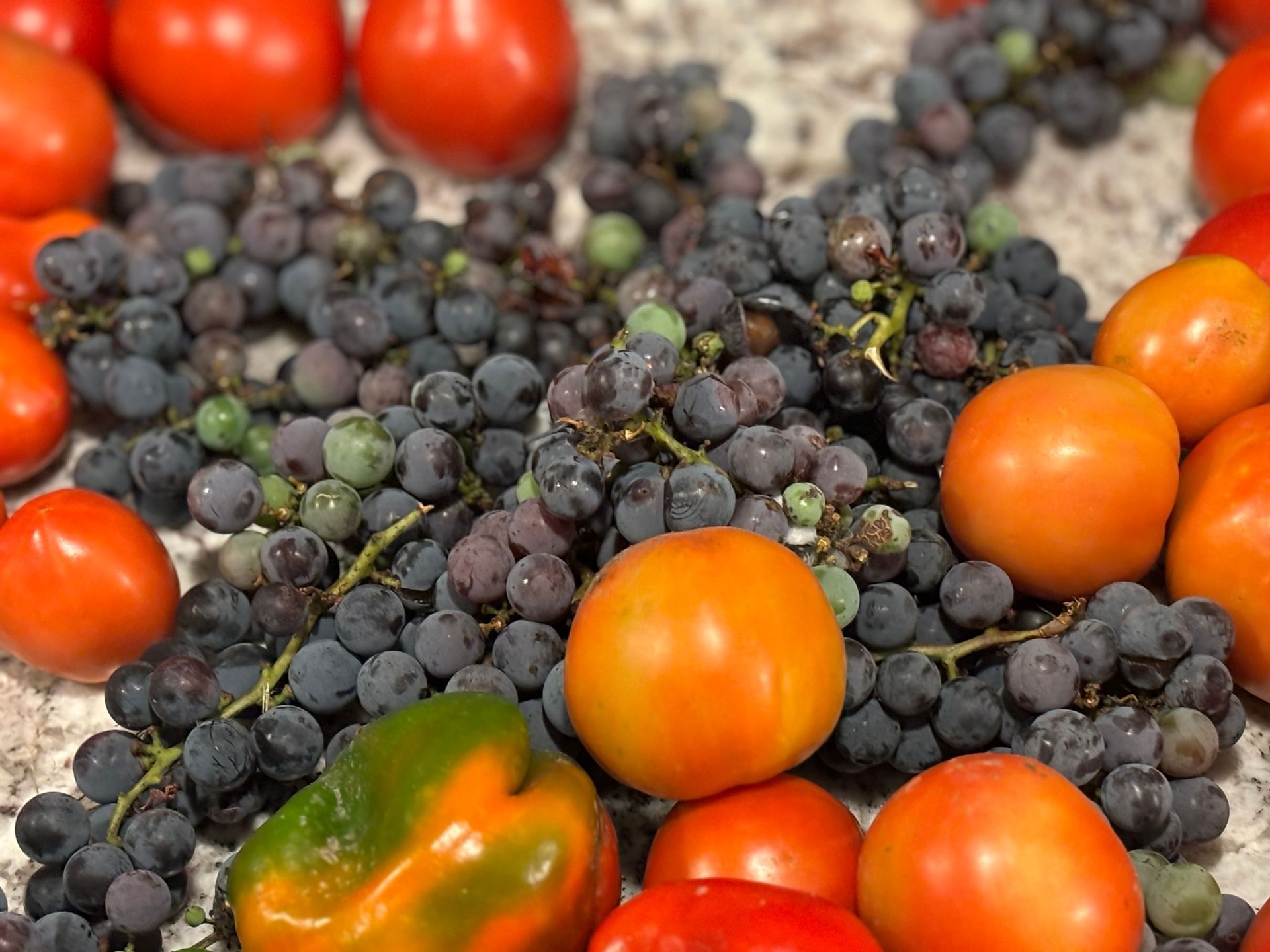 Our Apple orchard is doing great. Our grape vines are producing juice! We made grape jam this year.